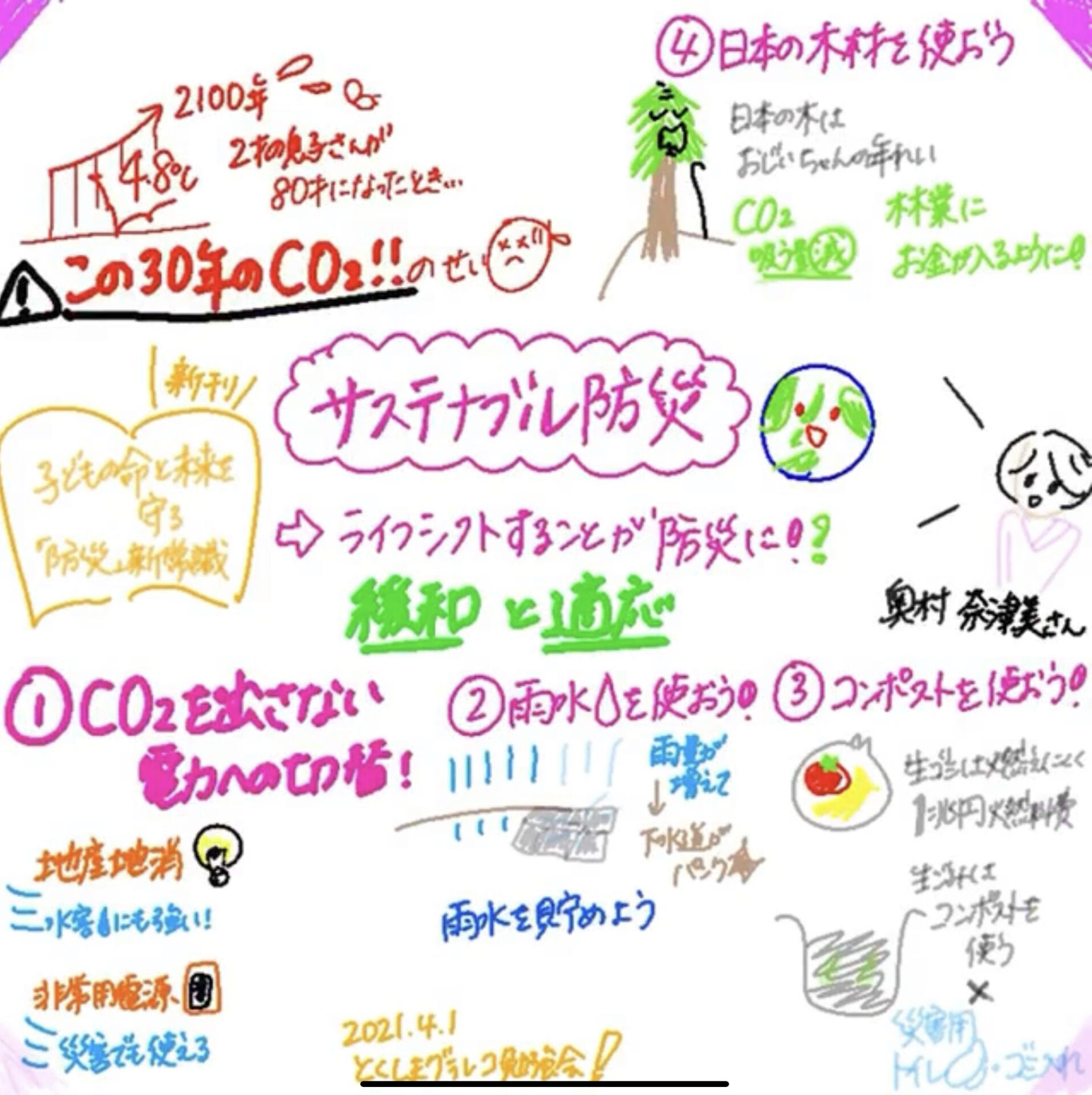 4月はアナウンサー・防災士・福祉防災認定コーチの奥村奈津美さんに20分ほど「サステナブル防災」についてお話いただきました