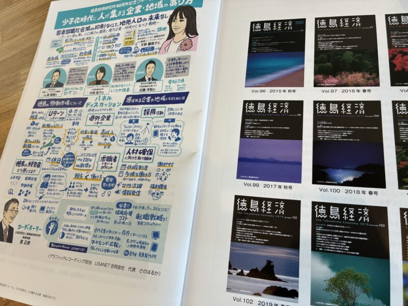 後日、徳島経済研究所の機関誌『徳島経済 Vol.114(2025 Spring)』が発行され、フォーラムの様子とともにグラレコも掲載していただきました。