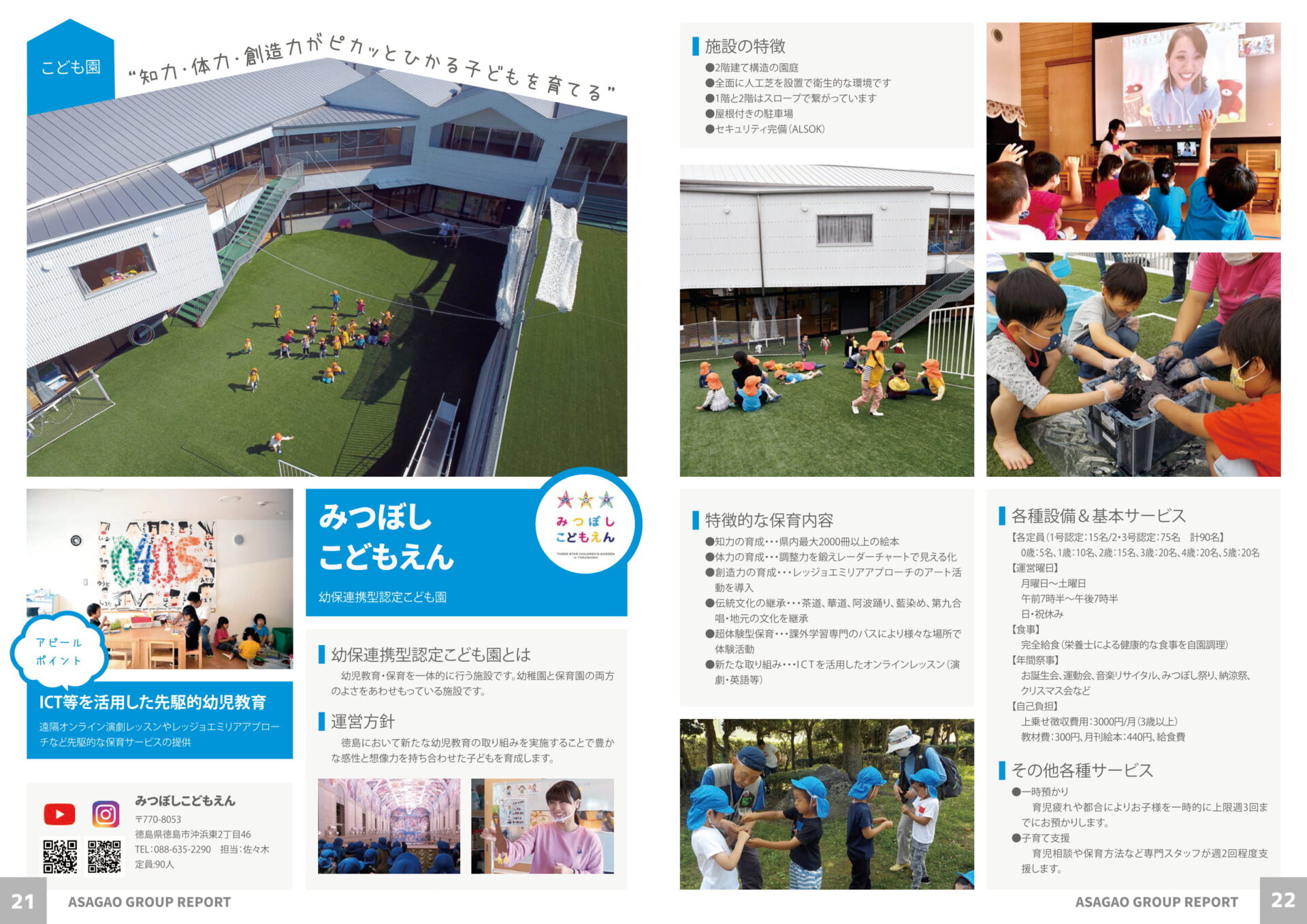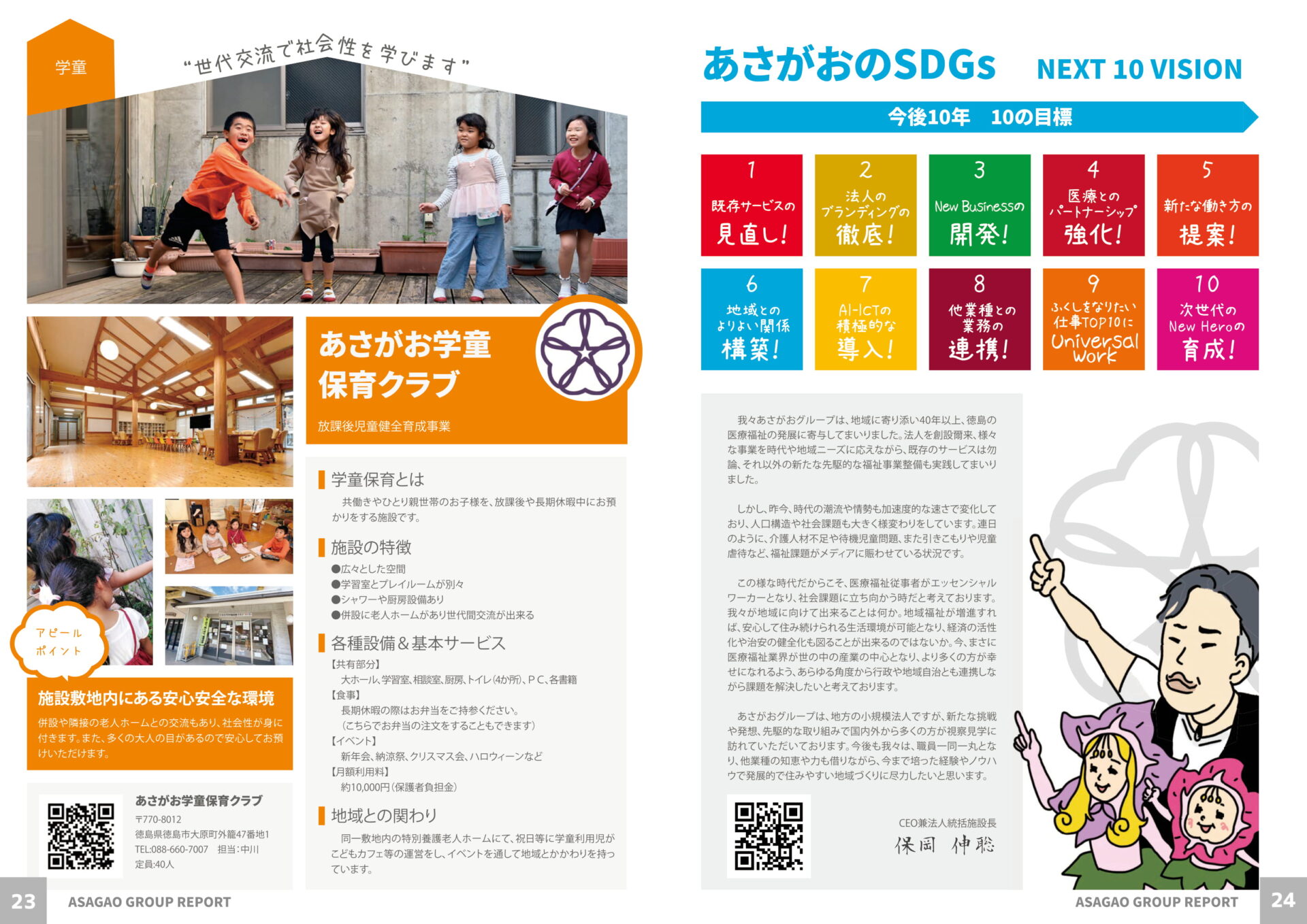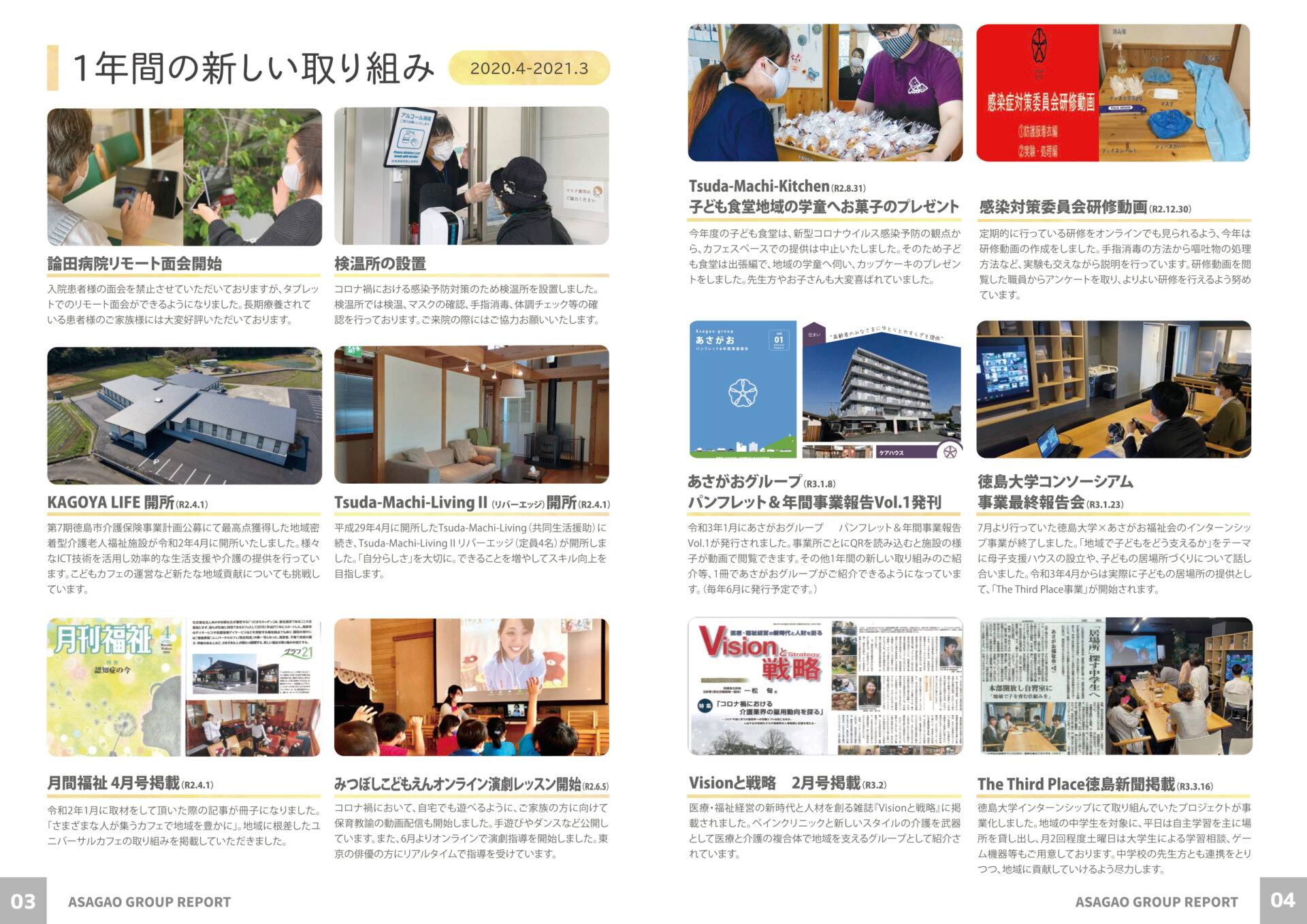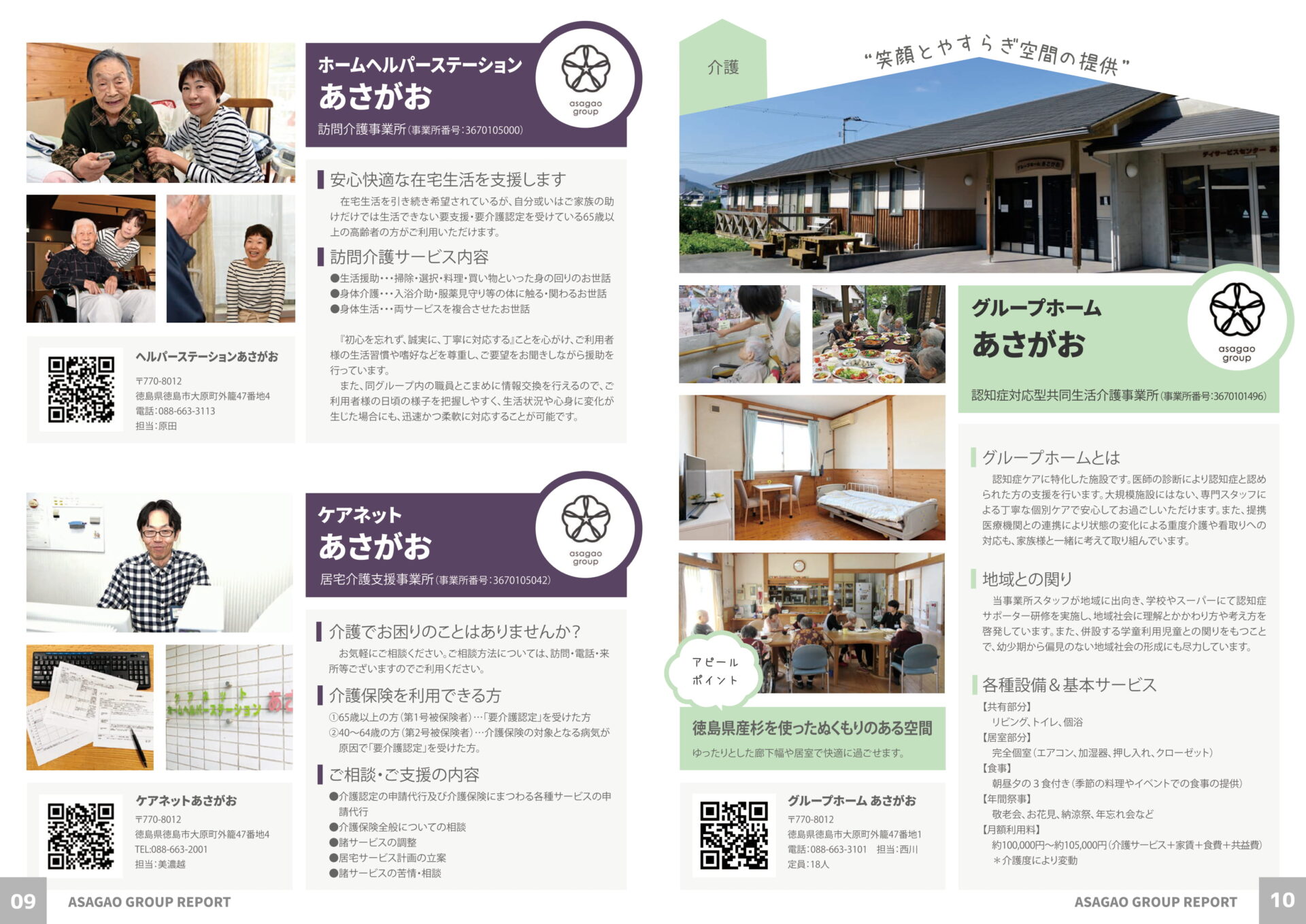 各事業所の紹介に加え、新しい取り組みやあさがおグループとしてのSDGsについても掲載
